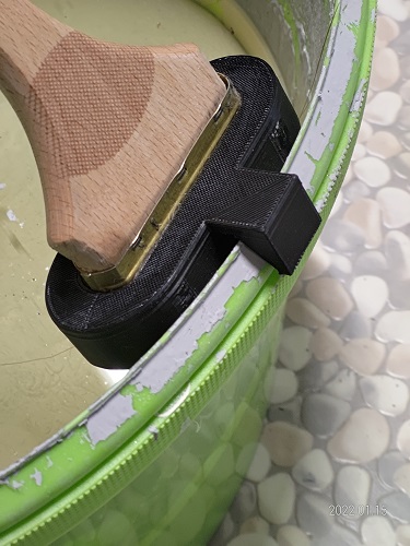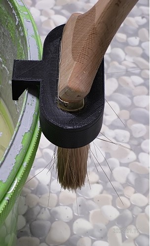 Ebenfalls gibt es die Pinselwanne mit Hakenfunktion, so das der Pinsel an fast jedem Farbeimer festgeklemmt